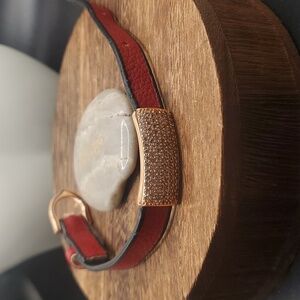 B2911 red leather Swarovski crystal bar wrist bracelet