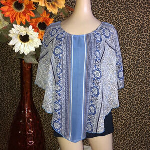 🦋B2G1🦋A.B. STUDIO Popover Paisley Print Navy Top SMALL