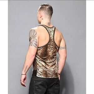 🦋B2G1🦋ANDREW CHRISTIAN Plush Leopard Print Mesh Tank Top Tee Gay Pride