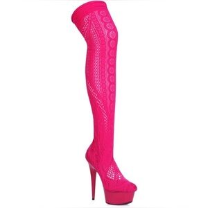 🦋B2G1🦋ELLIE SHOES 6" FUCHSIA Stiletto Stocking Thigh High Boot | 609-MEI |