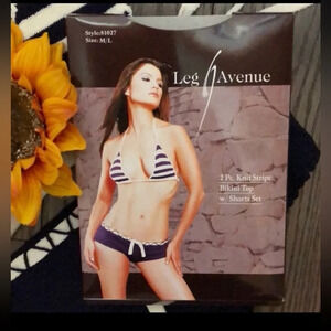 🦋B2G1🦋LEG AVENUE 2Pc Striped Knit Bikini Set MEDIUM/LARGE NWT