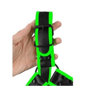 Strap yourself into this harness and maximise your masculine shape. The harness is adjustable so it fits every body type. Ouch! Glow-In-The-Dark products must be activated with the sunlight before enjoying it in the dark.
