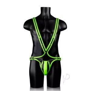 🦋B2G1🦋OUCH! Glow In The Dark NEON GREEN Bonded Leather Full Body Harness | L/XL