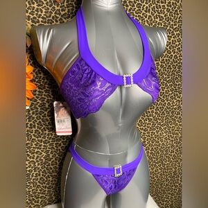🦋B2G1🦋SHIRLEY OF HOLLYWOOD Showtime 2Pc Purple Lace Set With Buckles | SMALL |