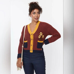 🦋B2G1🦋UNIQUE VINTAGE Flower Pocket 40's Cardigan Brown Navy NWT