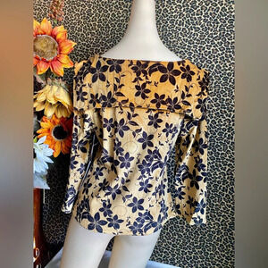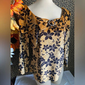 🦋B2G1🦋UNIQUE VINTAGE Gold Velvet Wide Collar & Bow Top NWT | LARGE |