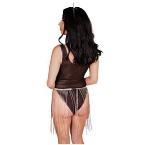🦋B2G1🦋WESTERN FASHION Sheer Mesh Stretch Bodysuit Holographic Glitter Trim O/S