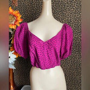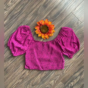 WILD FABLE Fuchsia Pink Polka Dot Cropped Top with Smocked Back | SMALL |