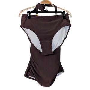 B2PRITY Tankini Swimsuit Brown Halter Neck Ruched Tummy Control Size L NWT