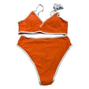 B2prity M High Waisted Swimsuit 2- Piece Bathing Bikini Orange White Trim