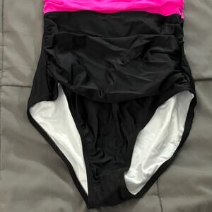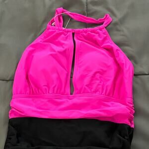 B2prity Pink Black Keyhole Halter Bathing Suit One Piece Swimsuit NWT Size S