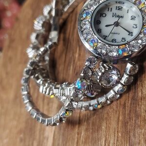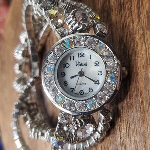 B3210 Vintage Vivani Watch Aurora borealis rhinestone AB Stretch Bracelet