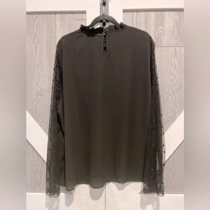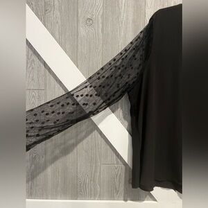 B3.30 Women’s Plus Black Blouse with Polka Dot Sheer Long Sleeves 4XL