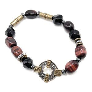 Materials: .925 Sterling Silver, Brass, Tiger's Eye, Hematite, Beautiful combination of beads and colors in this easy-to-wear stretch bracelet.