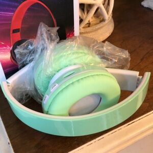 B39 Wireless Headphones. These headphones offer noise reduction and support for TF card and MP3 playback. Perfect for music lovers on the go. Color is a pretty mint green. New in Box. For additional information please ask questions.