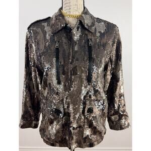 Item: Zadig & Voltaire Sequined Camou Jacket Women XS Rockstar Glam Edgy Chic Metallic