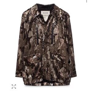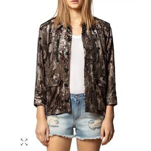 Item: Zadig & Voltaire Sequined Camou Jacket Women XS Rockstar Glam Edgy Chic Metallic