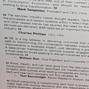 B4B How Technology and Big Data are Reinventing the Customer-Supplier Relationship by JB Wood Todd Hewlin and Thomas Lah...."The operating model that sits between the companies who supply business technology and the customers who buy it is about to be revolutionized."....Like Brand New....