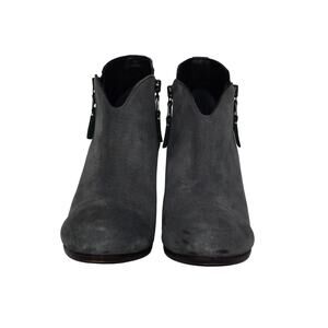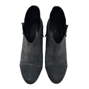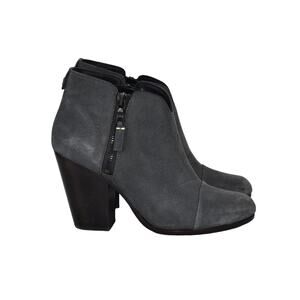 AUTHENTIC RAG & BONE Grey Nubuck Leather Cap Toe Double Zip Block Heel Ankle Bootie