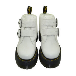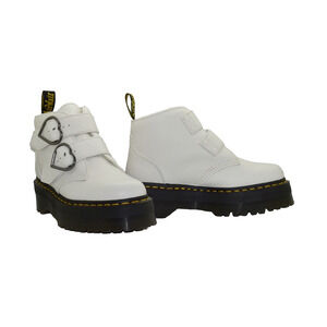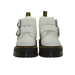 NEW AUTHENTIC DR. MARTENS Devon Heart White Leather Lace Up Buckle Strap Platform Boots