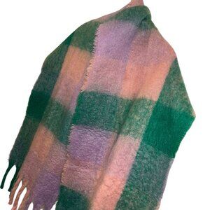 B5 Style NEW NWT pink green plaid blanket shawl scarf