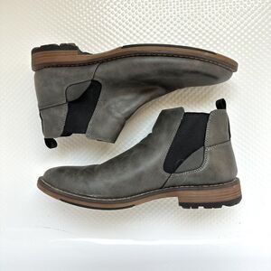 Mens gray faux leather Chelsea ankle boots. Size 10