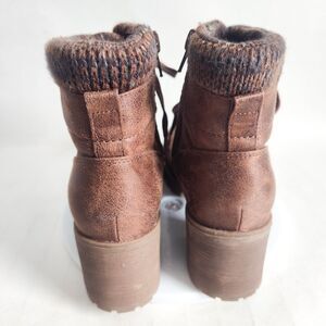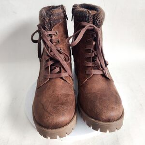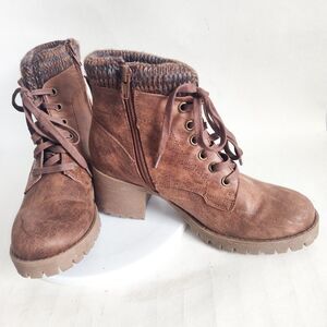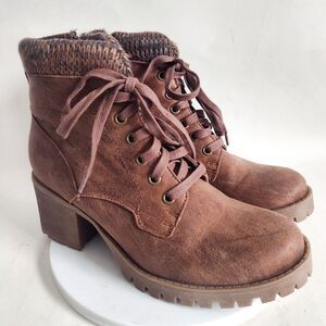 B52 BullBoxer Leather Brown Sweater Trim Combat Lace-up Boots Block Heel Size 8