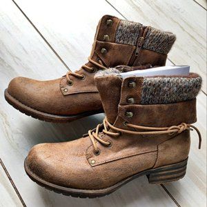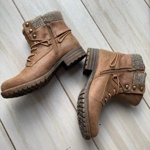 Brand New Brown Camel Combat Boots W/ sweater knit cuff.