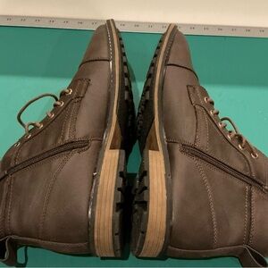 Step out in style with the men's boots. These brown boots offer a sleek and versatile look, perfect for any occasion. Boots have a dual closure system having a lace-up and a side zipper for closure. NWOB