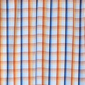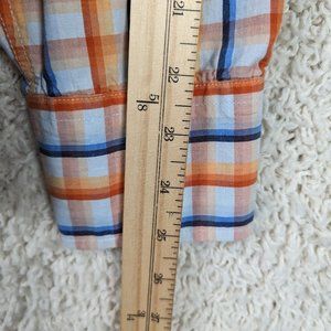 Pre-Owned Condition! 100% Cotton. Handsome Orange/Blue/Black/White Plaid Long Sleeve Shirt with Clear Glossy Buttons(spare attached). Some Buttons Show Cracks/Chips but Functional.