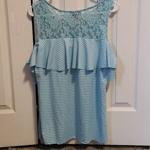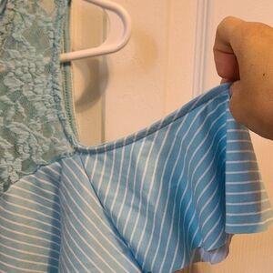 White/ turquoise top with open cut shoulder XL Super cute and great condition! Fast delivery💌