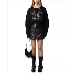 B57 Zadig & Voltaire Sweatshirt Womens XS Arvene Logo Embellished Street Baddie