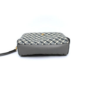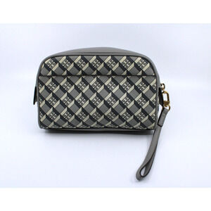 B6 Auth TORY BURCH Geometric Logo Essential Pouch Wristlet Makeup Bag $115 Gray