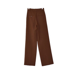 AUTHENTIC WILFRED Terracota Brown Double Pleated Front Slash Pockets Straight Wide Leg Dress Trousers