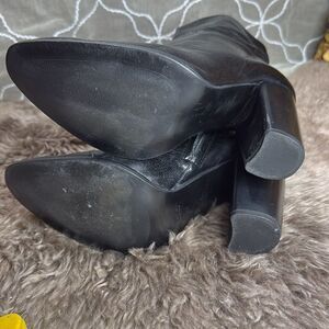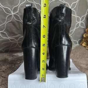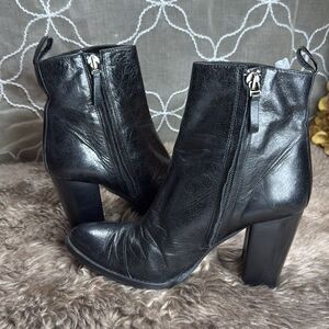 (B6) Zara Black Wrinkled Leather Block Heel Booties Size 38/7.5 US WOMEN