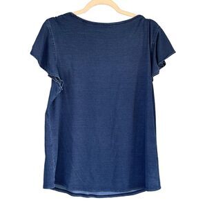 B7 Denim Flutter V Neck Blouse Short Sleeve Shirt Blue Large Stretchy