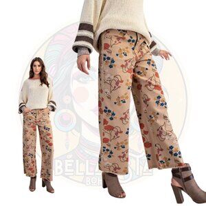 B855 EASEL Khaki Floral Printed Stretch Twill Pants