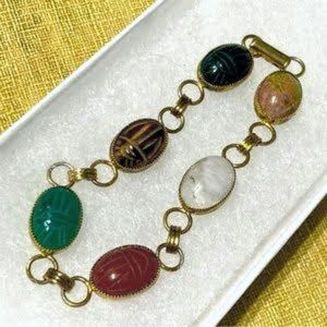 B.A. Ballou Vintage 1950's Vermeil 6 Oval Hardstone Scarab Link Bracelet 7"