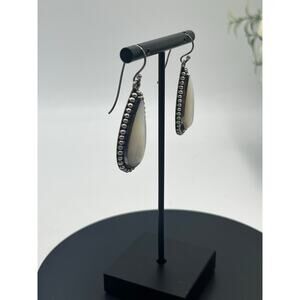 BA Indonesia 925 Mother Of Pearl Drop Dangle Sterling Silver Heavy Earrings