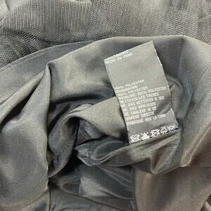 Flirty tutu dress featuring a fitted waist and mesh tulle twirly skirt. Upper is nude mesh, with ornate embroidery and black rhinestones on front and simple black ribbing piping on back. Cups are lightly padded, and there are corset stays all around. Sweetheart neckline, with back zip closure. New with tags. Not much for stretch, and no pockets.