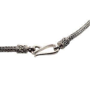 This flexible BA snake necklace in classic sterling silver with a hook and loop clasp.