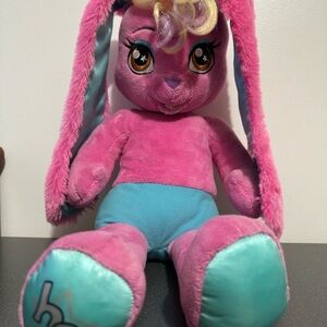 The BAB Build-A-Bear Honey Girl HG Risa Pink Rock Star Bunny Rabbit Plush is a 20" plush toy from Build-A-Bear Workshop's Honey Girls collection. This cute and cuddly rabbit plush is designed in a stylish pink color with a rock star theme, perfect for all occasions. Made from plush material, this adorable stuffed animal is ideal for children who love rabbits and creative play. The Build-A-Bear brand ensures high quality and attention to detail in this charming addition to any doll or bear collection.