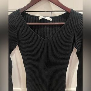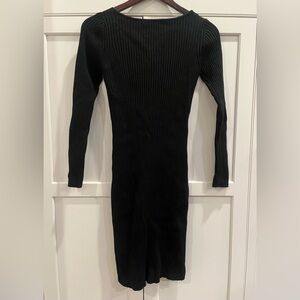 B+AB ribbed sweater dress wool blend size M black V-neck