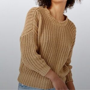 Stay cozy and stylish with this tan knit sweater. Perfect for any casual outing.