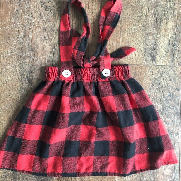 This buffalo plaid strap skirt features an elastic waist with a pull through loop on the back. It is soft and pairs perfectly with long sleeve and tights for any holiday pictures. It sizing is between 6 to 12 months fitting a height of 26.5 – 29.5 inches and weight of 16.5 – 22 lbs.