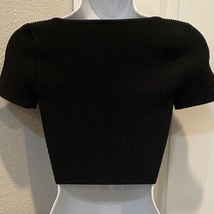 BABATON ARITZIA BLACE COMPRESSION RIBBED CROPPED SHORT SLEEVE TOP