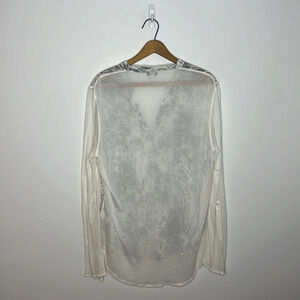 BABATON Aritzia • Mixed Media Leopard Cheetah Animal Print Silk Cotton Blend Long Sleeve V Neck Blouse - semi sheer, lightweight material