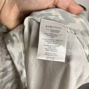 BABATON Aritzia Animal Print Silk Cotton Blend Long Sleeve V Neck Blouse