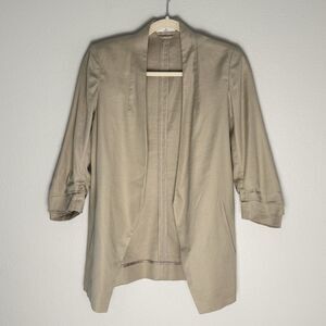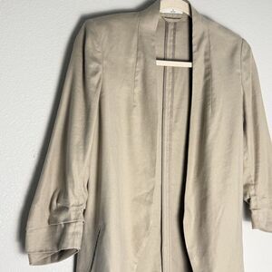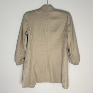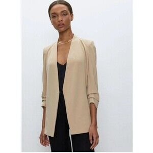 BABATON Aritzia Power Linen Blazer Jacket Open Front Ruched Sleeve Tan Sz. 0