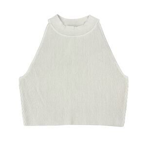 BABATON Aritzia Sculpt Rib-Knit Cropped Halter Top Sz Large Matte Pearl